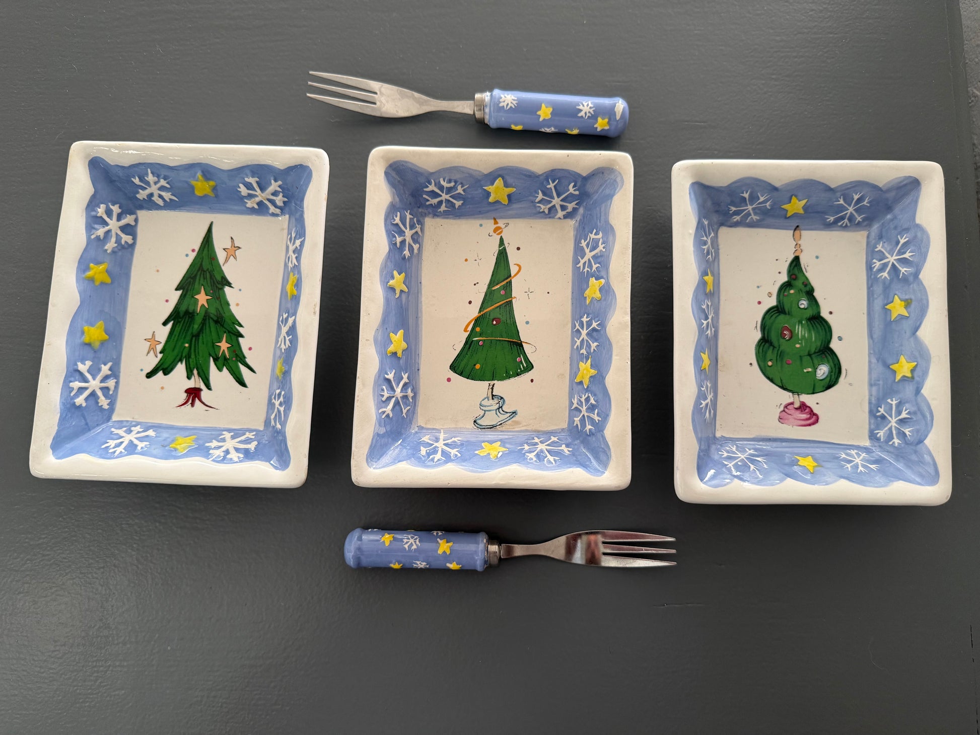 Ceramic Christmas Tree Appetizer Dish Set with Cocktail Forks