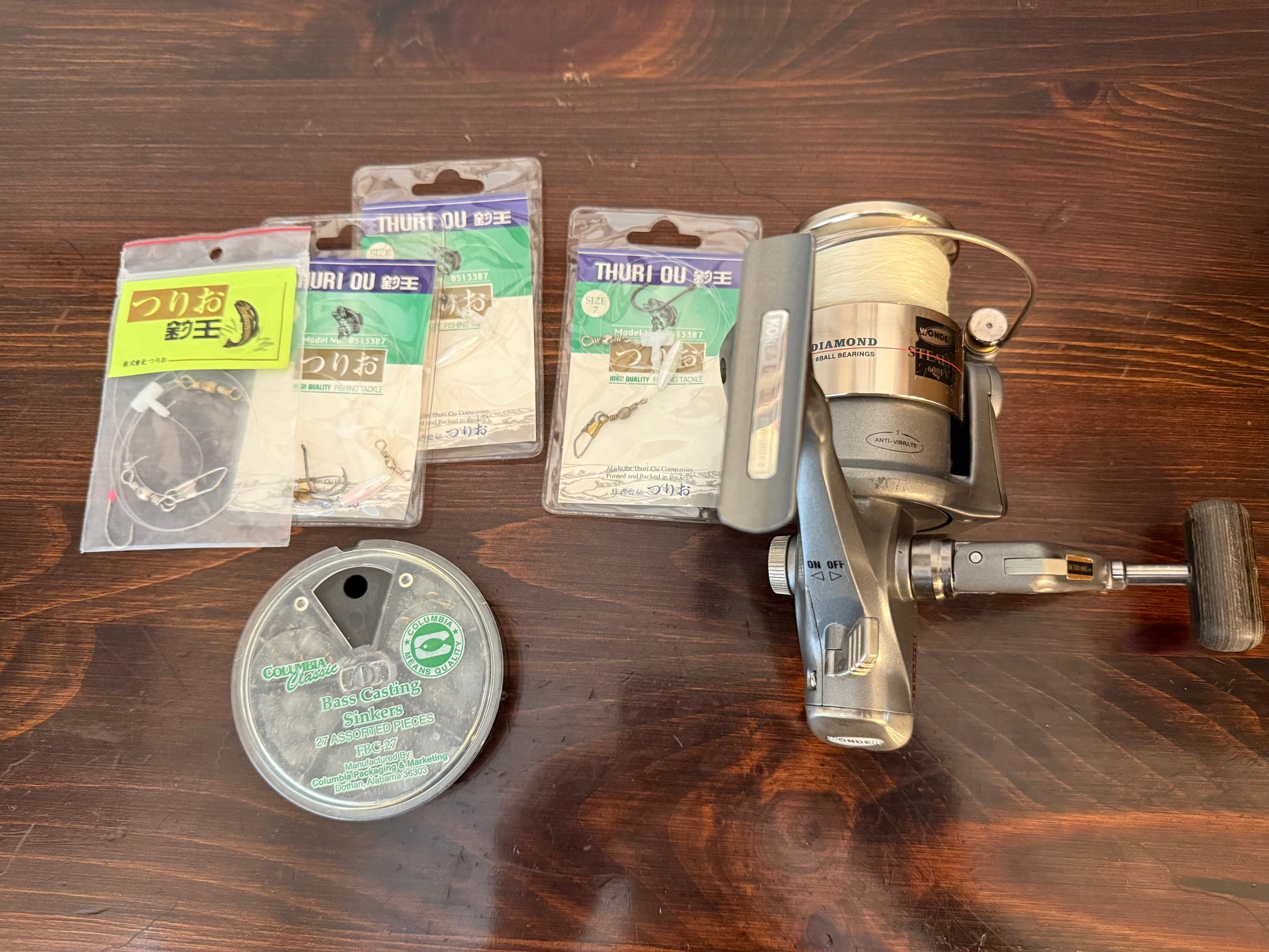 This handmade wooden tackle box was made by a local Korean attorney so he could go fishing to relax from his stressful job. It is a very nice tackle box with storage compartments, a shelf and large storage area. I left it as is with a reel, sunglasses, and some Korean lures. Has loops for a shoulder strap to make it easy to carry to the water.