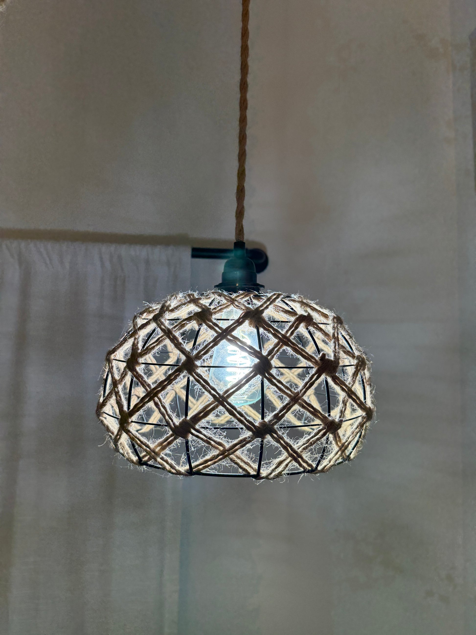 Modern Rustic Rope & Wire Cage Pendant Light Fixture