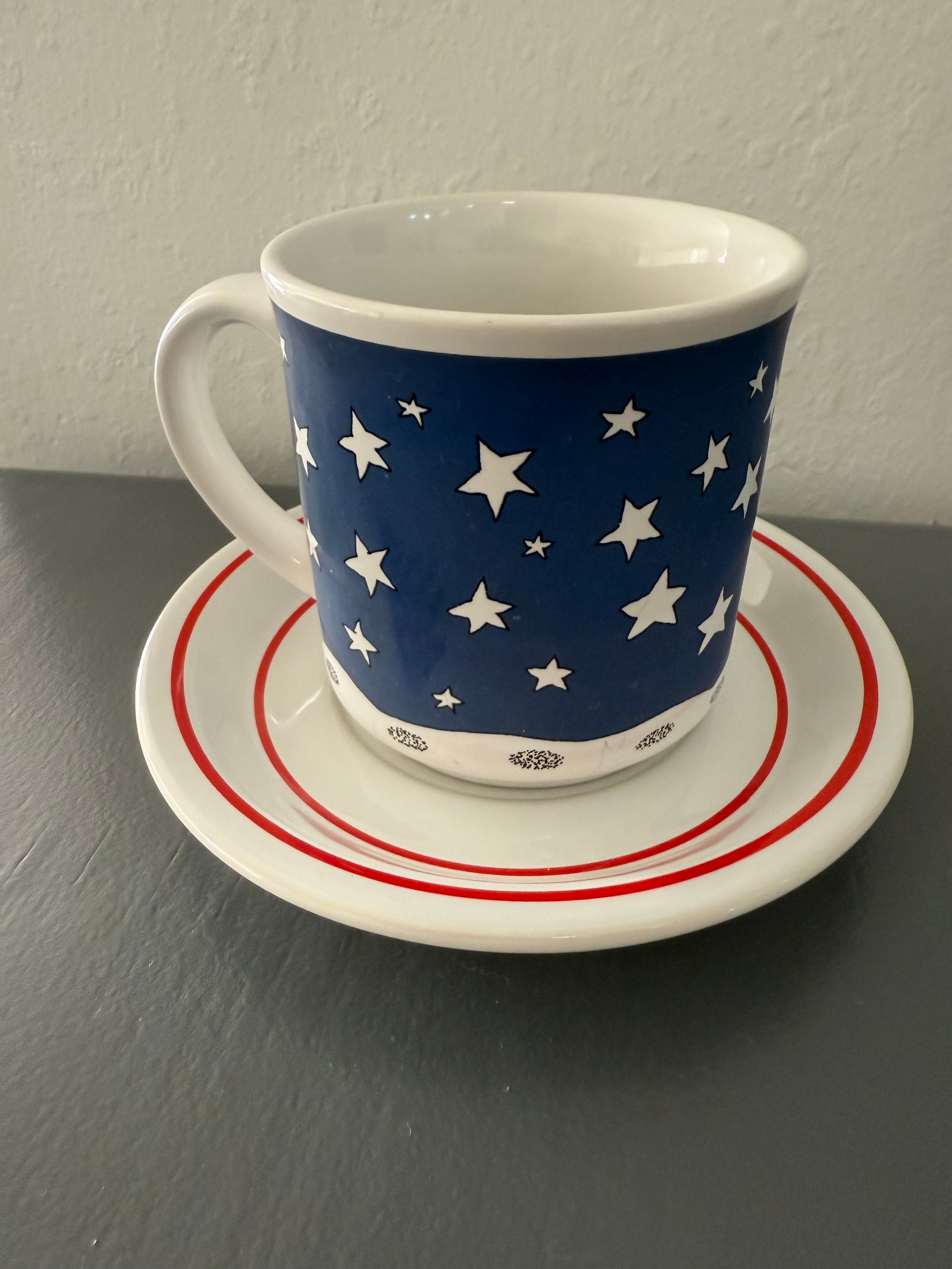 Audrey Christie was a British artist known for her charming illustrations, particularly of teddy bears and whimsical characters. This mug and Epoch "'Twas The Night Before Christmas" saucer are from the 1980s.