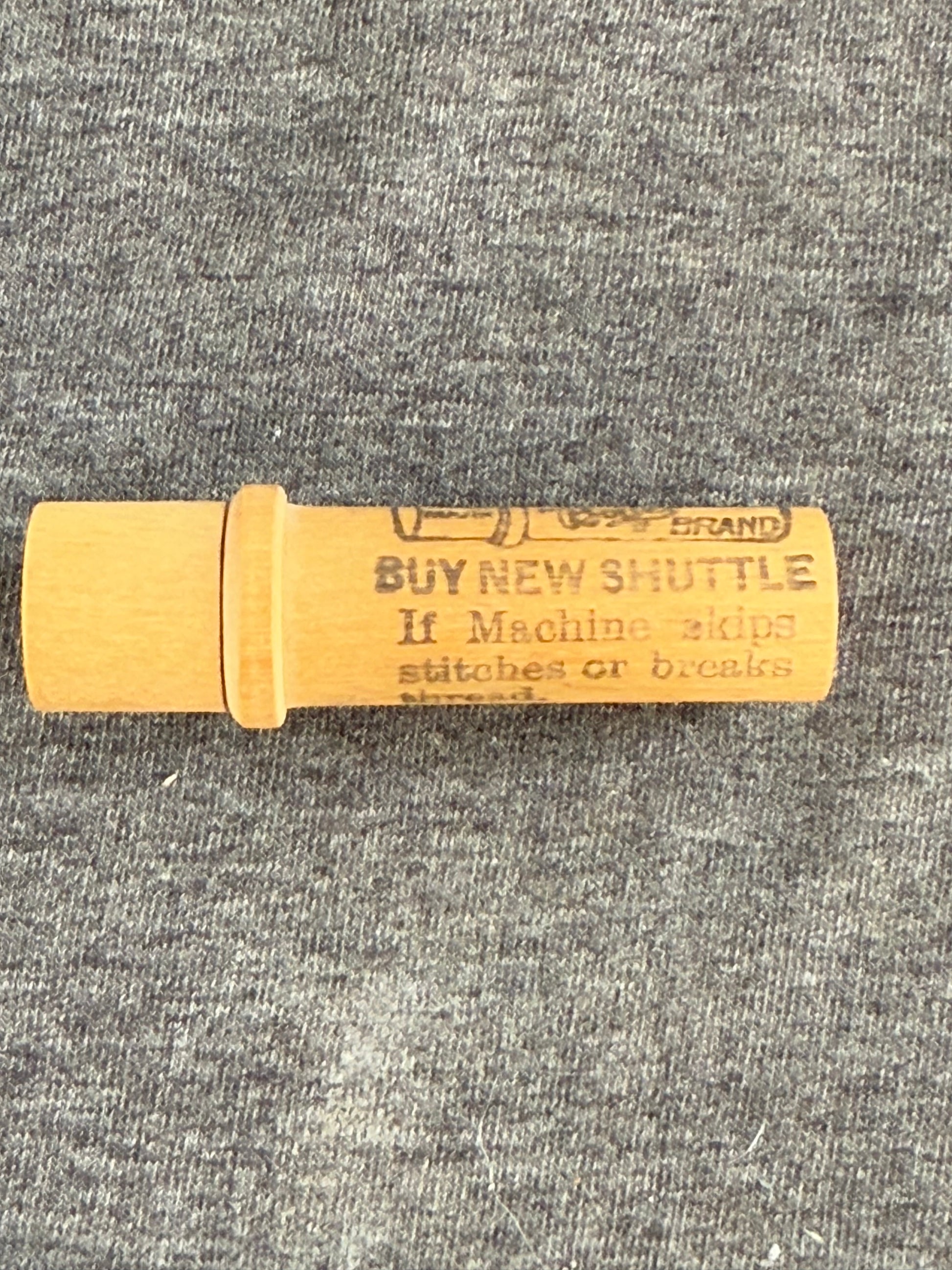 Since wooden needle cases like this one were a common way to store needles, protect them from damage and prevent them from getting lost, companies used them for advertising. The "Buy New Shuttle" slogan on this case suggests it was intended to promote the purchase of new sewing machine shuttles.