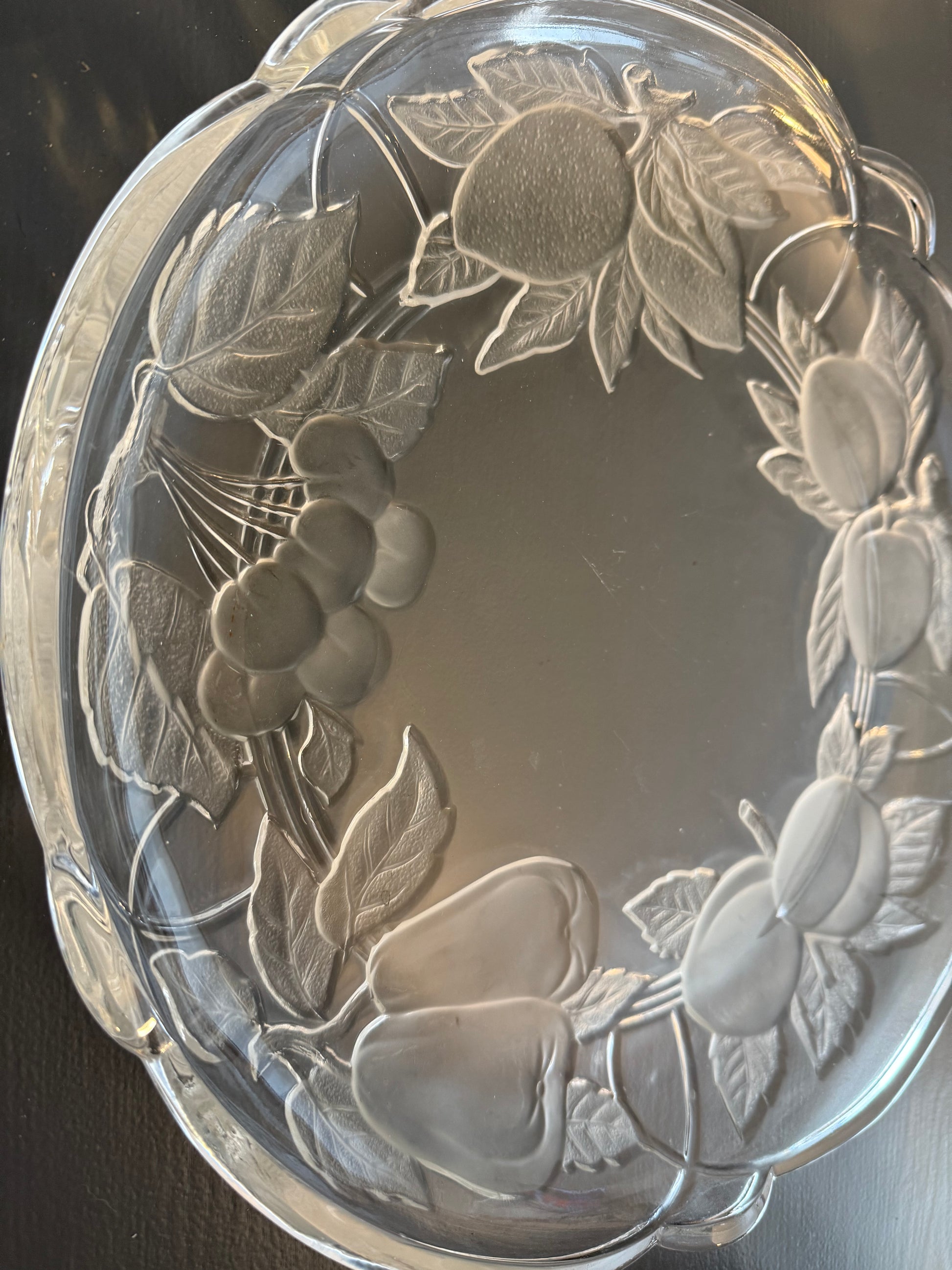This well-made vintage frosted glass platter with the "Forbidden Fruit" pattern is perfect for any occasion, whether casual or formal.