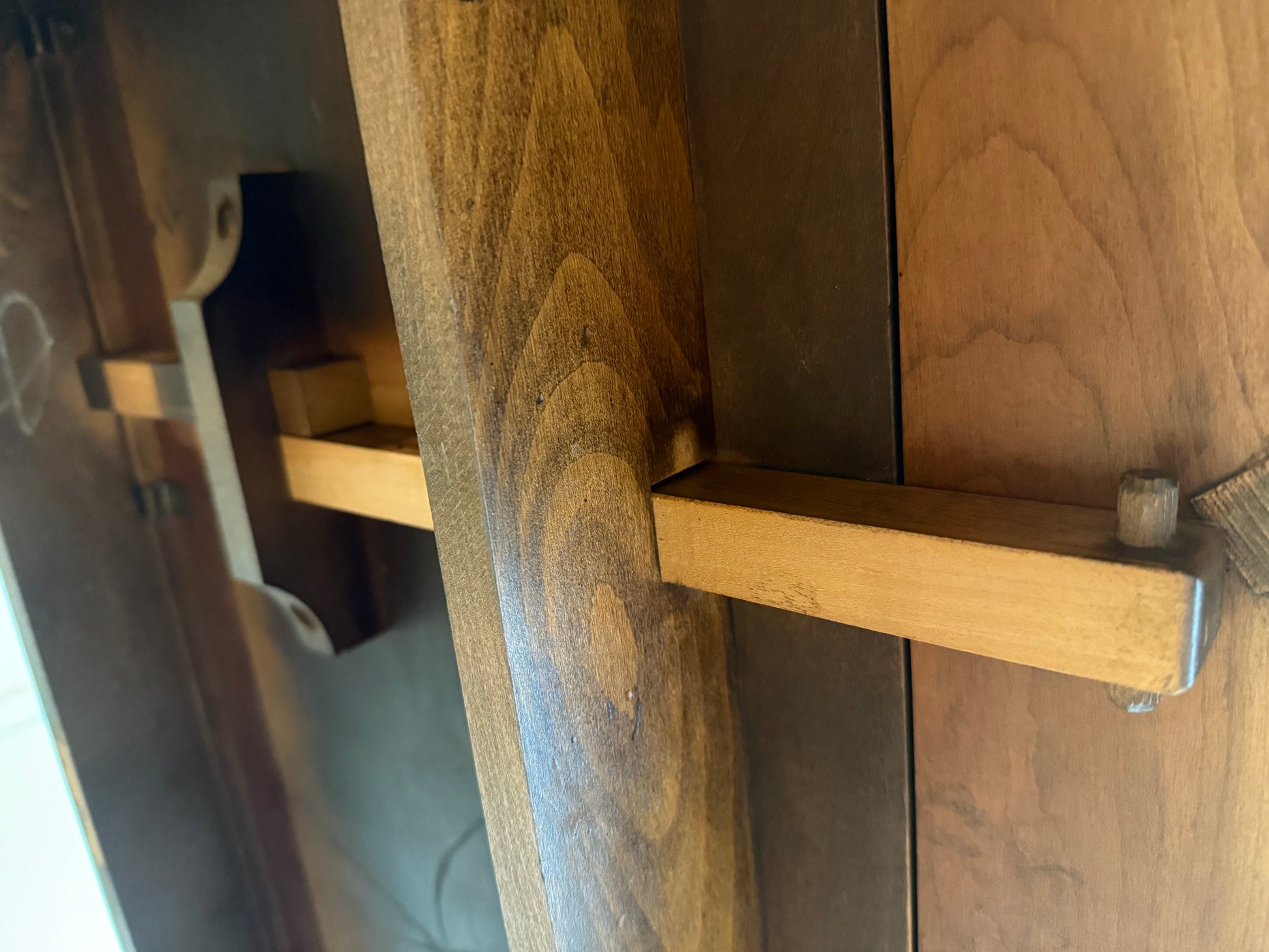 This table exhibits features consistent with Queen Anne revivals, such as the drop-leaf functionality and cabriole legs which suggests it was made in the mid-20th century.